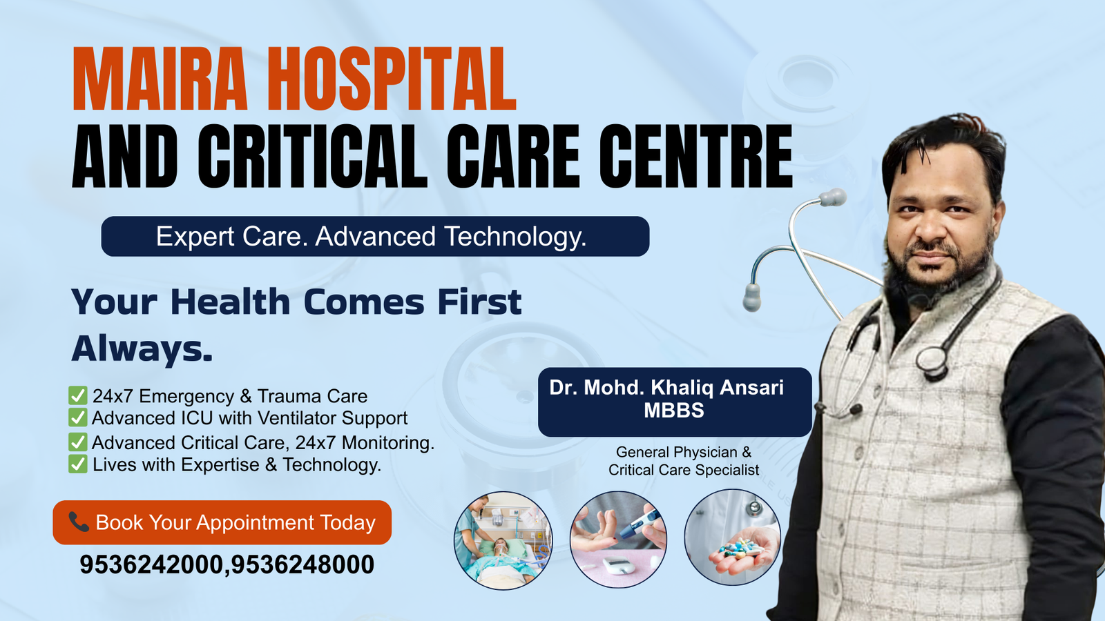Maira Hospital and Critical Care Center is a trusted healthcare facility dedicated to providing high-quality, patient-focused medical services in Bareilly. Equipped with modern infrastructure, advanced diagnostic technology, and a skilled team of experienced doctors and nursing staff, the hospital ensures safe, effective, and compassionate treatment for patients of all age groups.