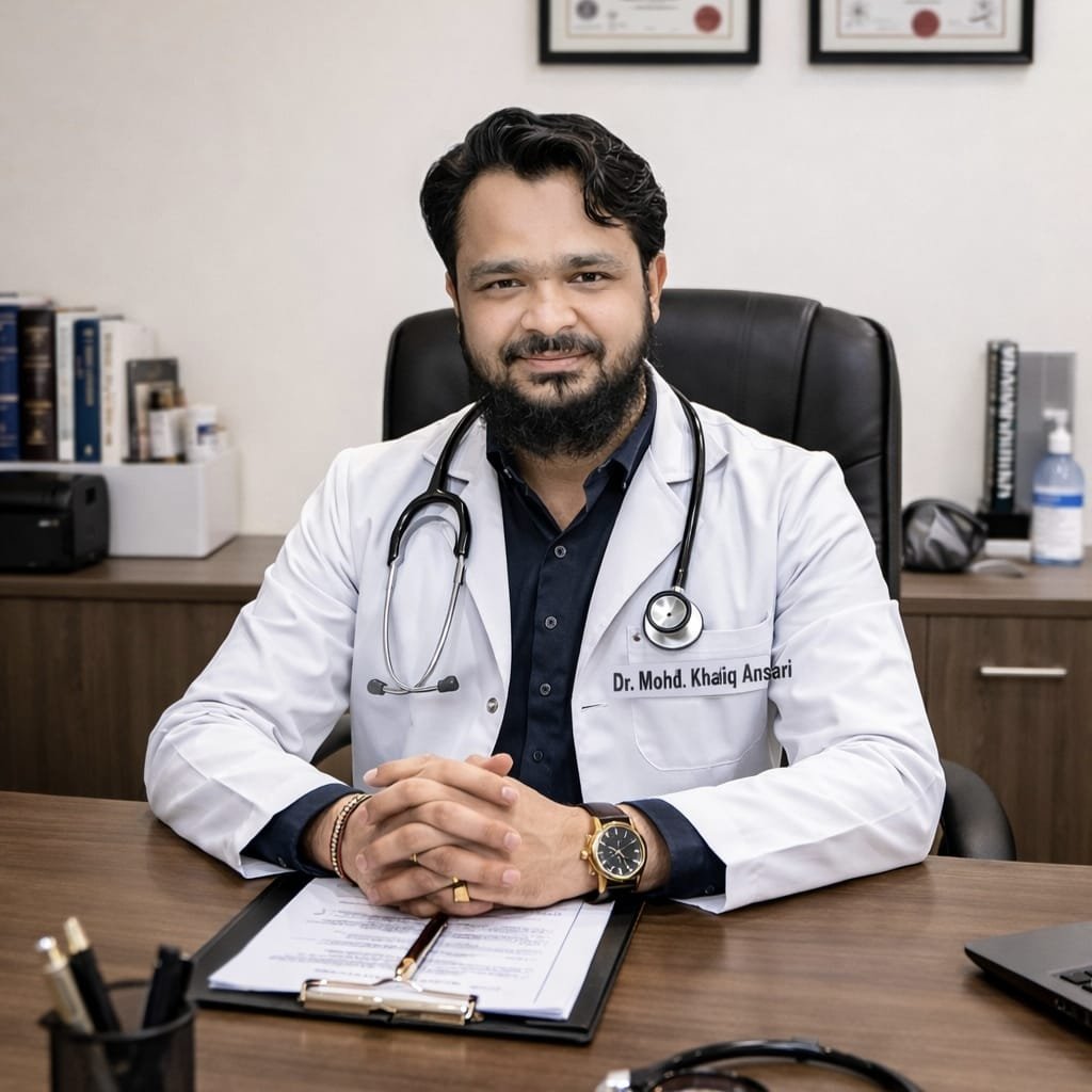 Dr. Mohd. Khaliq Ansari is a highly respected Physician and Critical Care Specialist, known for his exceptional skills and compassionate patient care. He completed his MBBS from King George’s Medical University (KGMU), Lucknow, and pursued his Anesthesia and Critical Care from Mumbai, building a strong foundation in diagnosing and managing complex medical conditions.